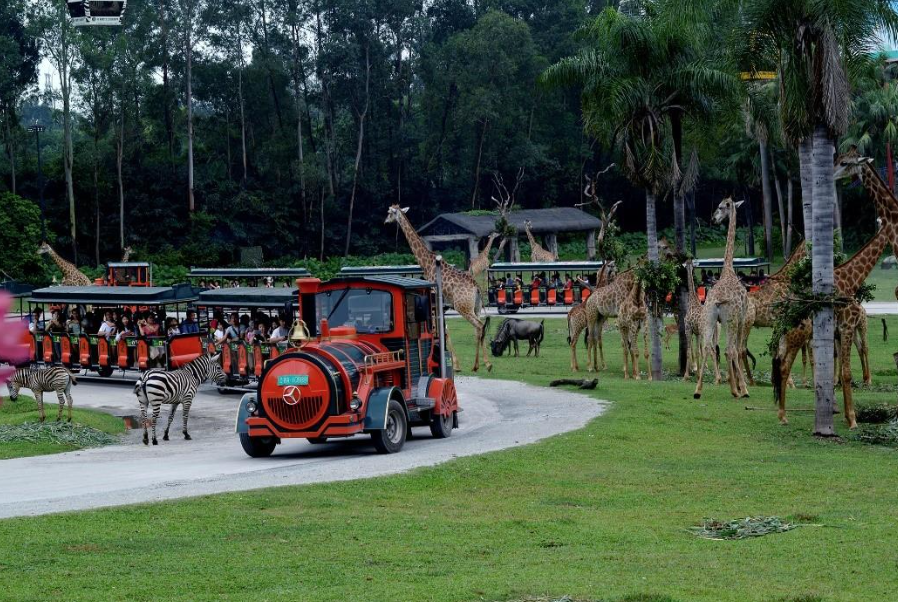 长隆是亚洲最大的野生动物园之一,占地超过2000英亩,它分为多个区域,反映了那里动物的自然环境。最激动人心的体验之一,是在野生动物被车游览。您可以在会说英语的导游的陪同下近距离看到许多不同的动物,如:斑马、老虎和大象等。